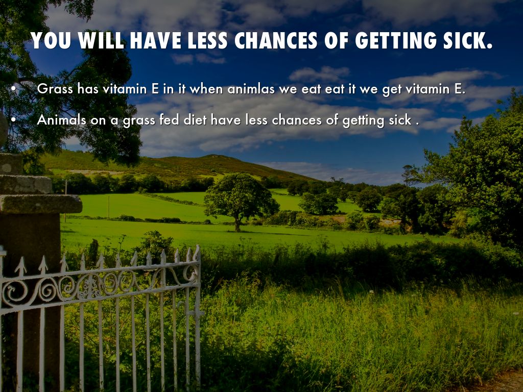 Animals on a grass fed diet have less chances of getting sick .