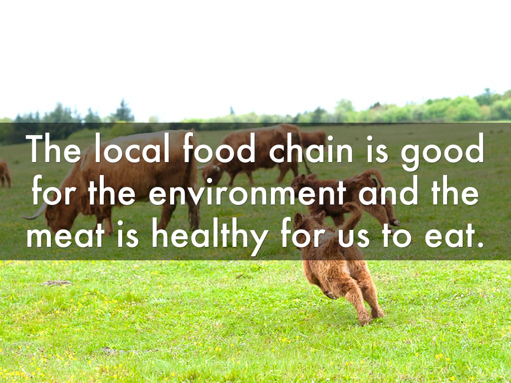 The local food chain is good for the environment and the meat is healthy for us to eat.
