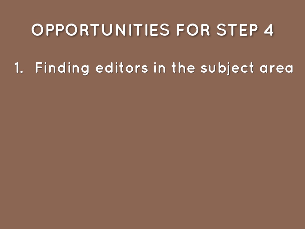 OPPORTUNITIES FOR STEP 4