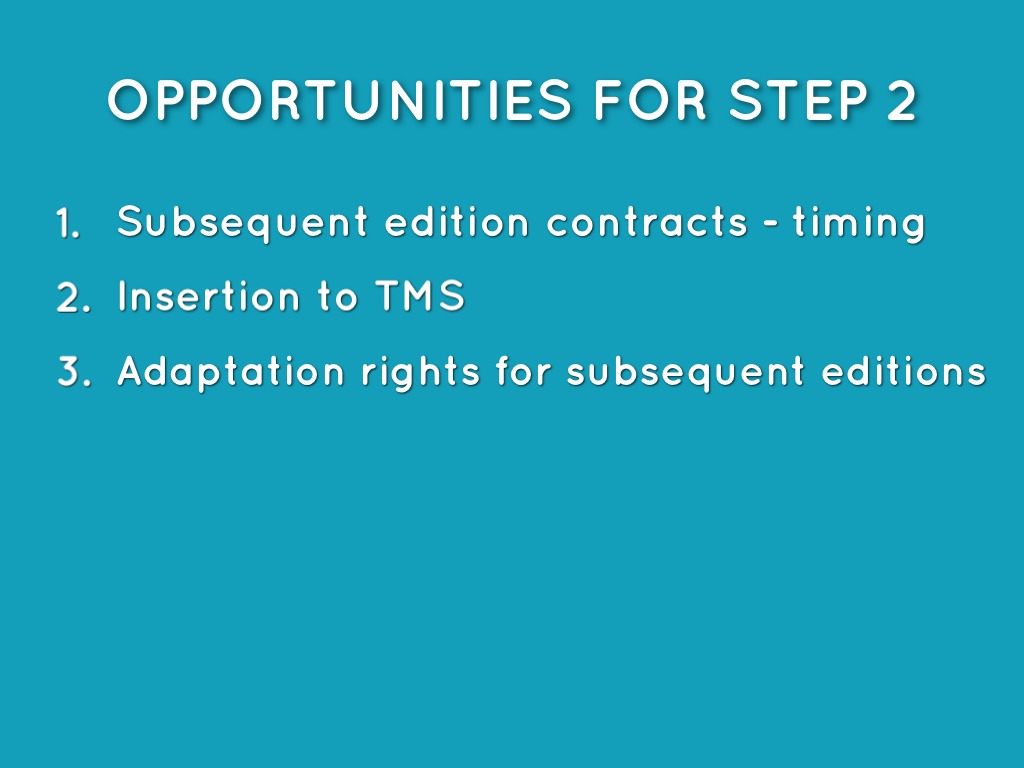 OPPORTUNITIES FOR STEP 2