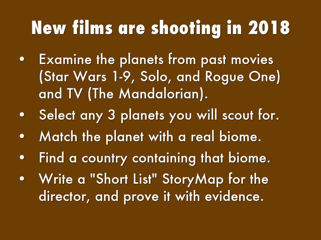 Examine the planets from past movies (Star Wars 1-9, Solo, and Rogue One) and TV (The Mandalorian).