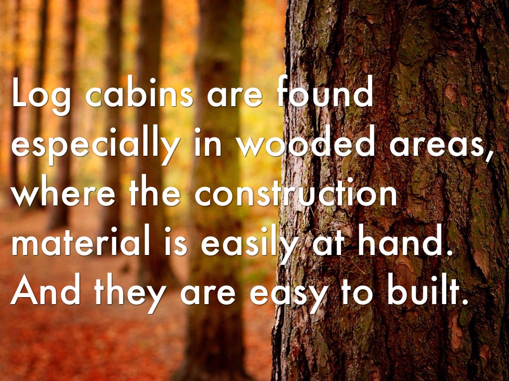 Log cabins are found especially in wooded areas, where the construction material is easily at hand. And they are easy to built.