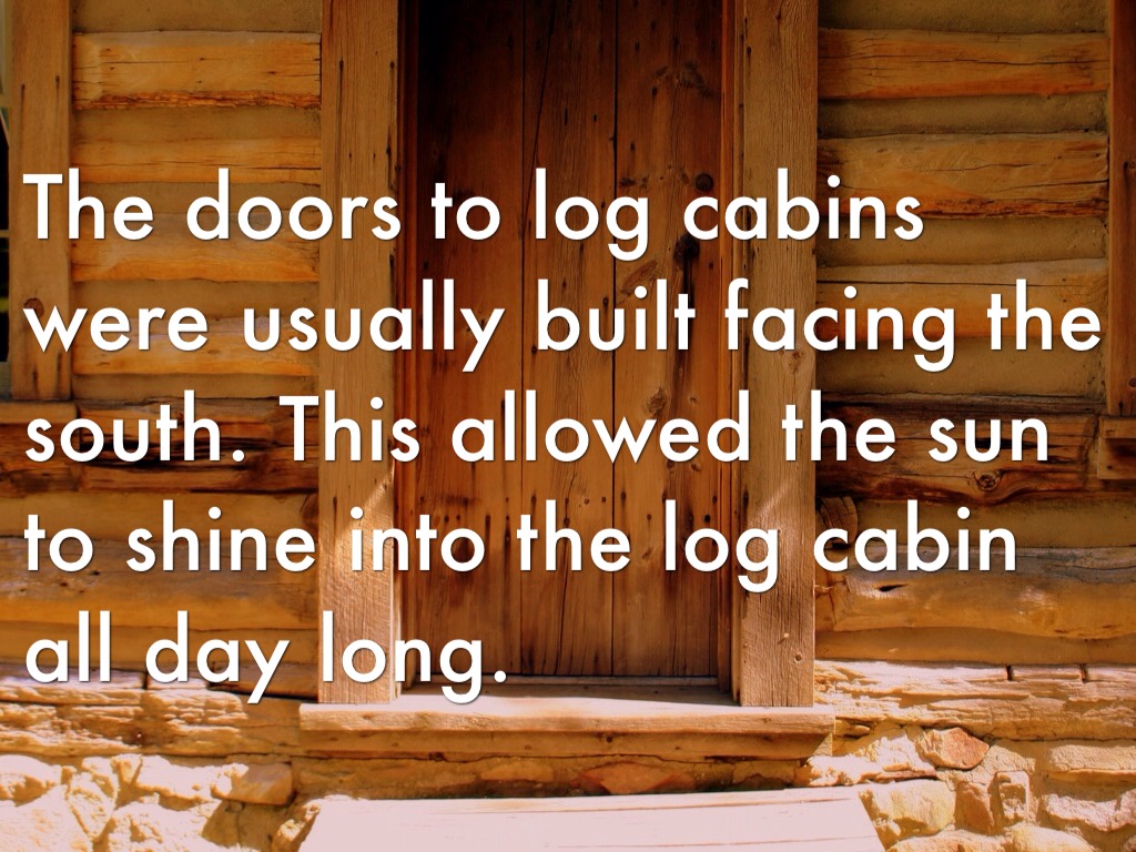 The doors to log cabins were usually built facing the south. This allowed the sun to shine into the log cabin all day long.
