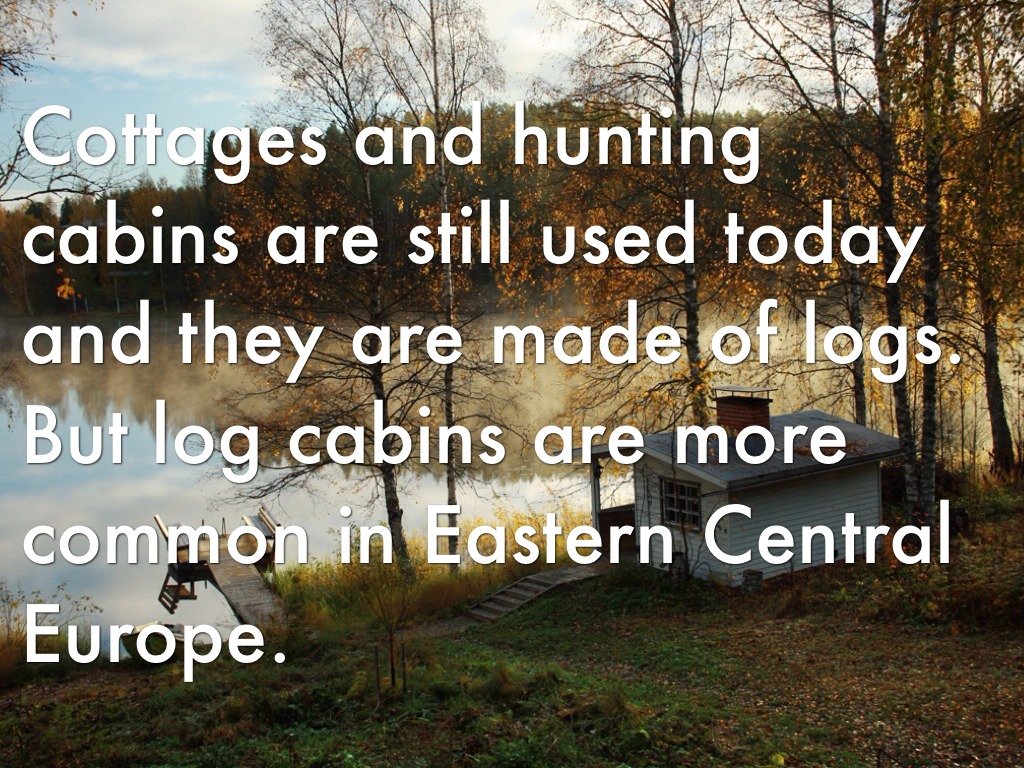 Cottages and hunting cabins are still used today and they are made of logs. But log cabins are more common in Eastern Central Europe.