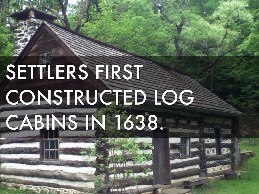 SETTLERS FIRST CONSTRUCTED LOG CABINS IN 1638.