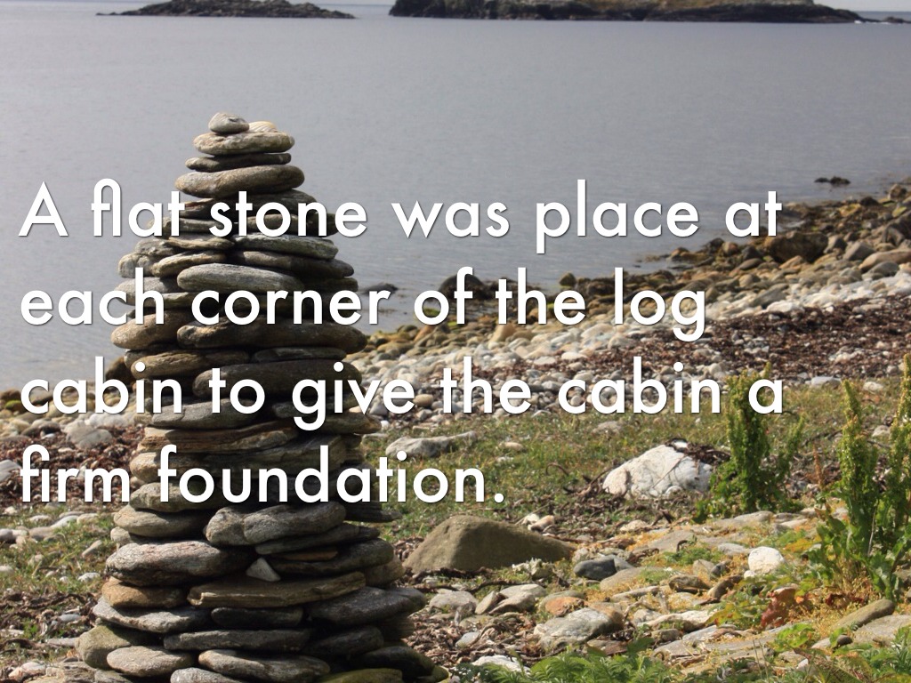 A flat stone was place at each corner of the log cabin to give the cabin a firm foundation.