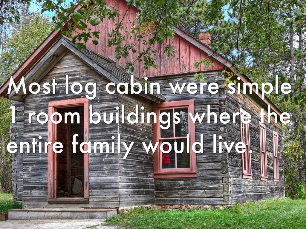 Most log cabin were simple 1 room buildings where the entire family would live.