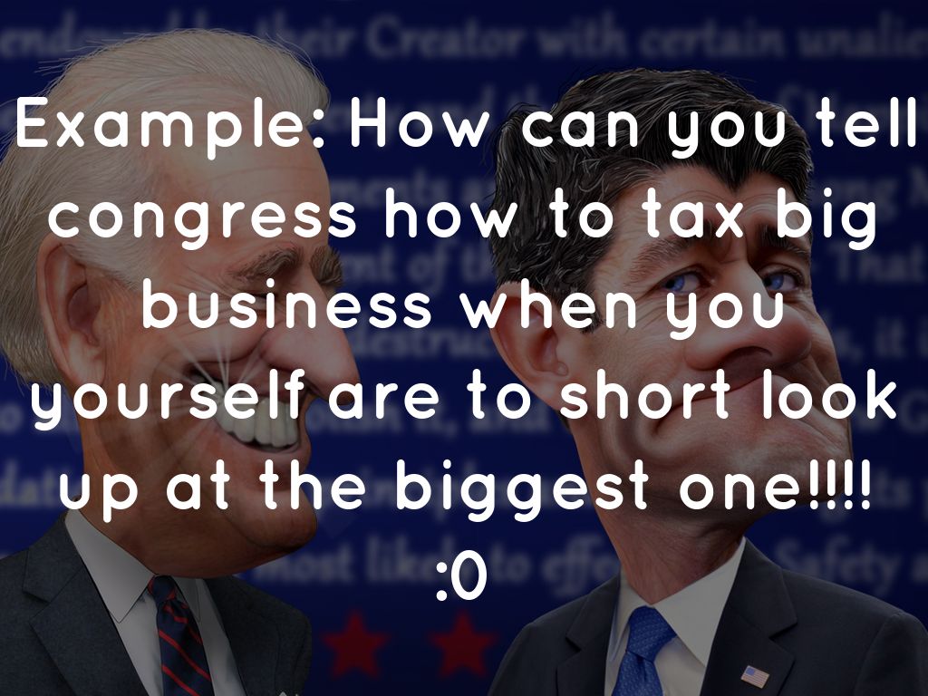 Example: How can you tell congress how to tax big business when you yourself are to short look up at the biggest one!!!!
