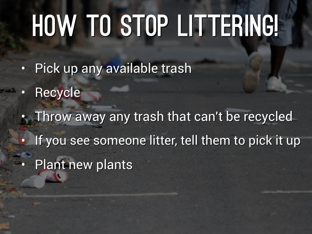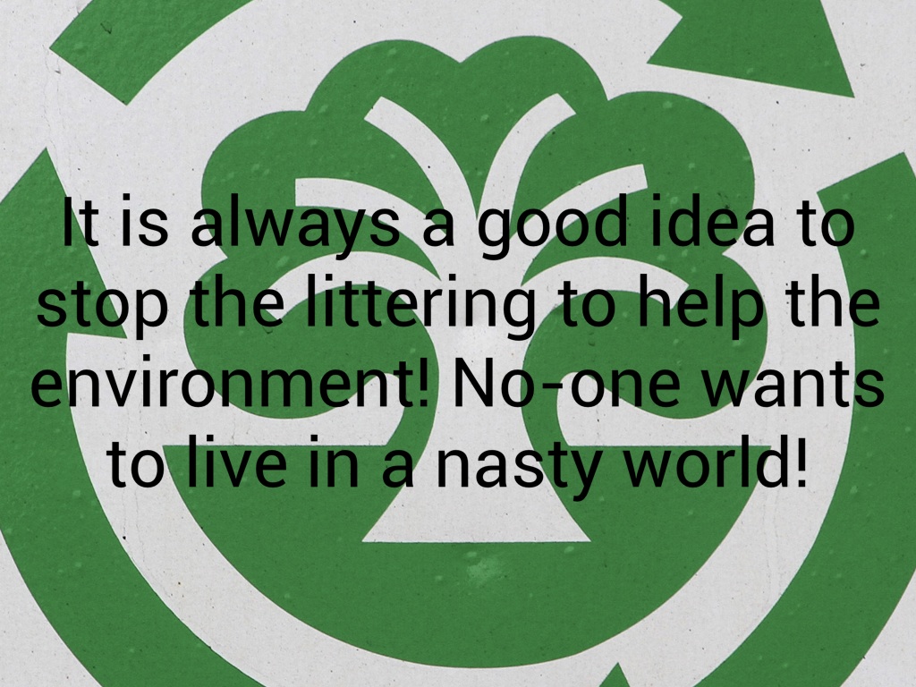 It is always a good idea to stop the littering to help the environment! No-one wants to live in a nasty world!