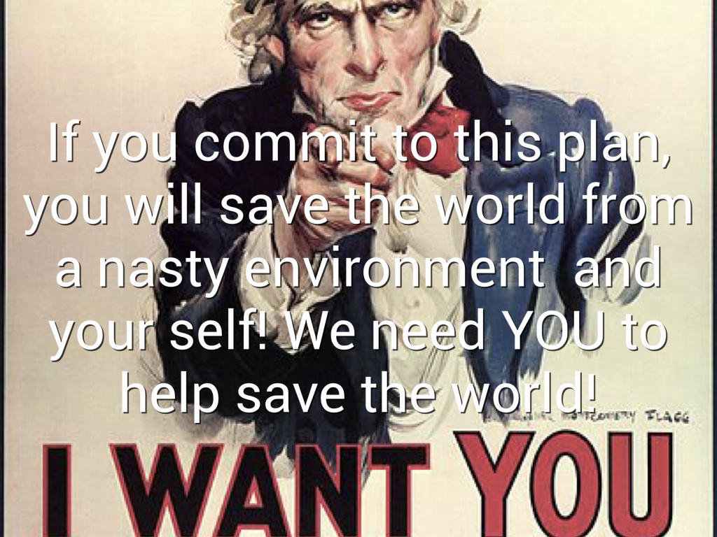 If you commit to this plan, you will save the world from a nasty environment and your self! We need YOU to help save the world!