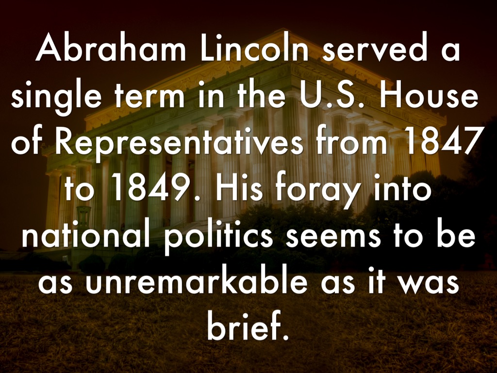 Abraham Lincoln served a single term in the U.S. House of Representatives from 1847 to 1849. His foray into national politics seems to be as unremarkable as it was brief.