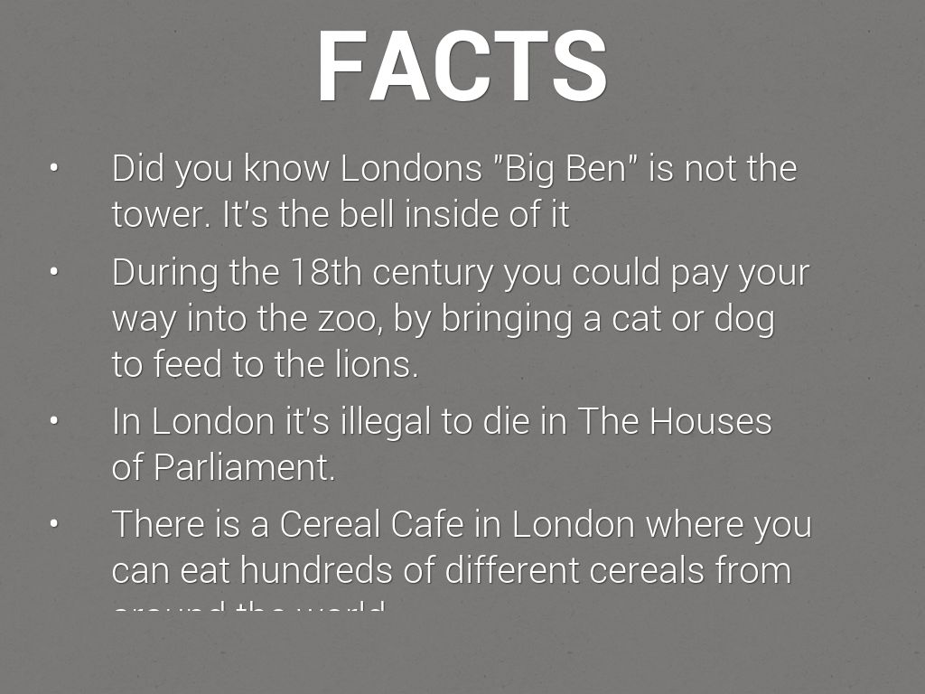 • Did you know Londons "Big Ben" is not the tower. It's the bell inside of it