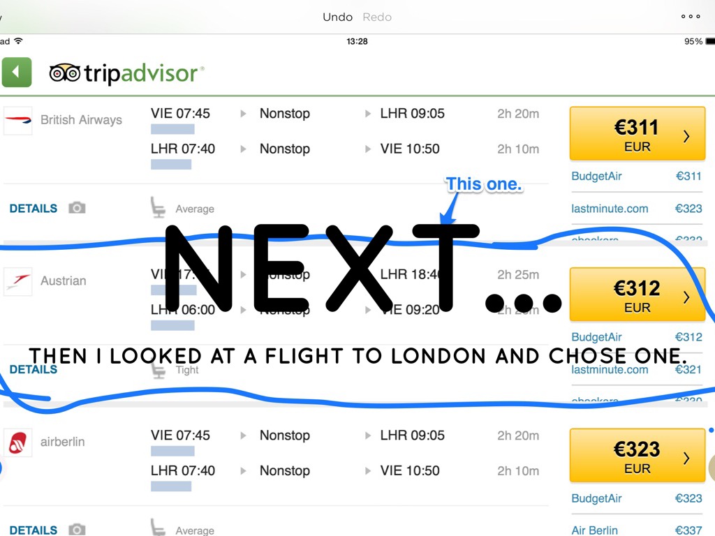 THEN I LOOKED AT A FLIGHT TO LONDON AND CHOSE ONE.