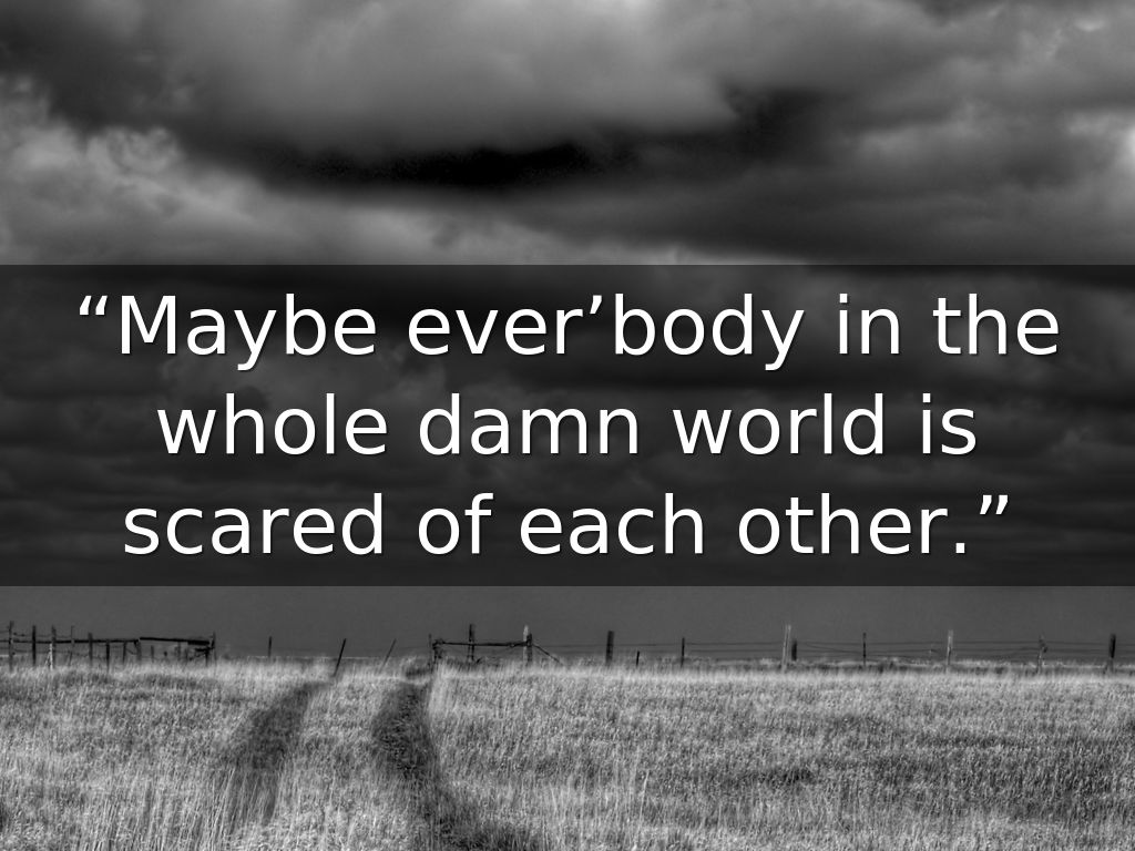 “Maybe ever’body in the whole damn world is scared of each other.”