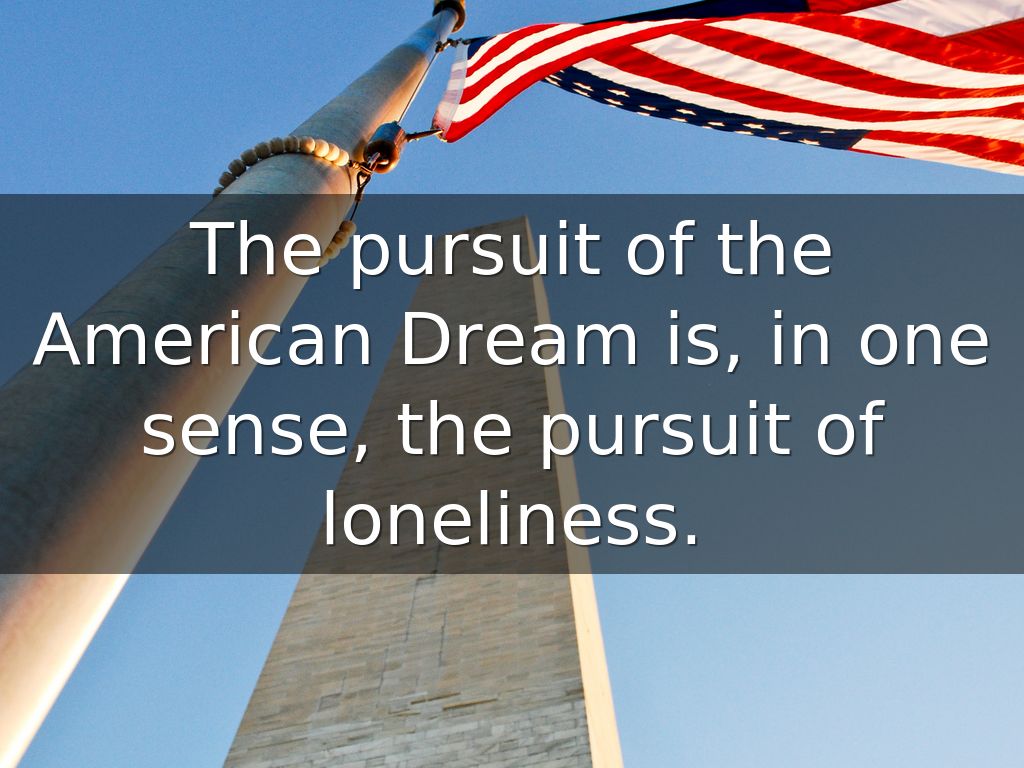 The pursuit of the American Dream is, in one sense, the pursuit of loneliness.