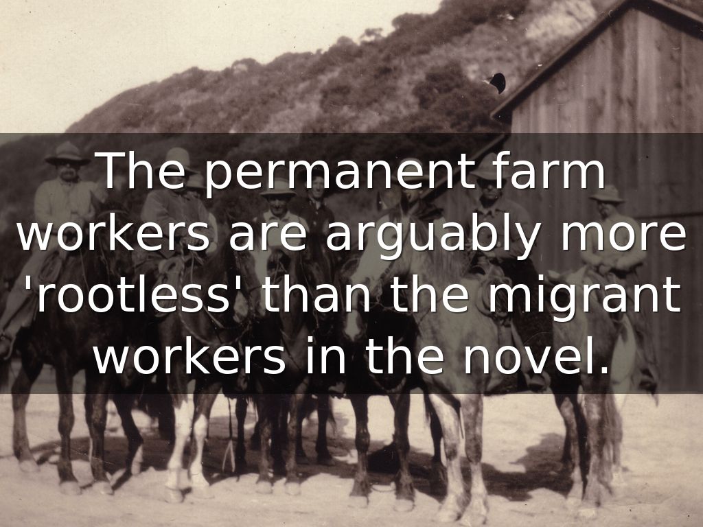 The permanent farm workers are arguably more 'rootless' than the migrant workers in the novel.