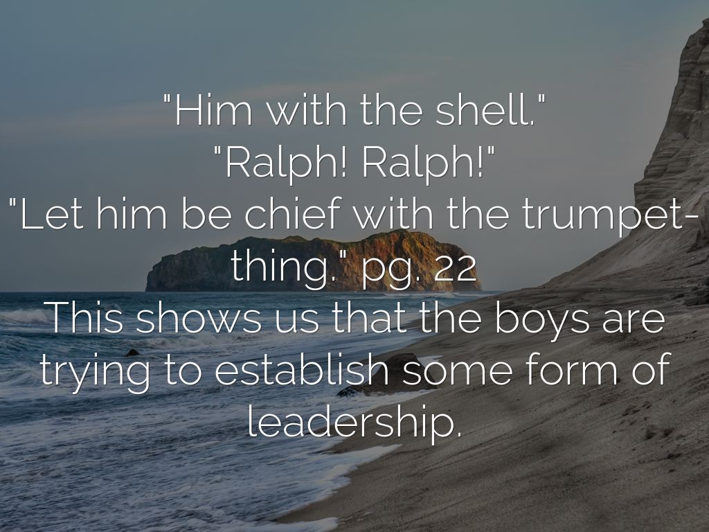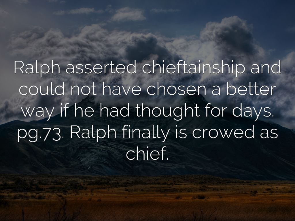 Ralph asserted chieftainship and could not have chosen a better way if he had thought for days. pg.73. Ralph finally is crowed as chief.