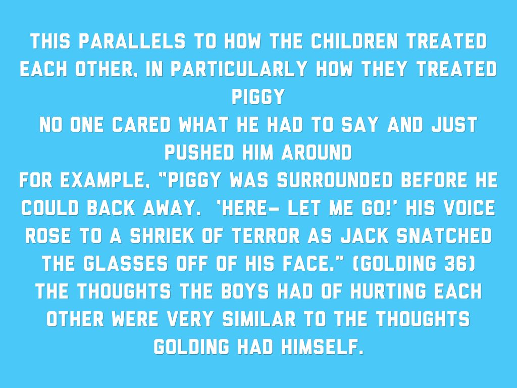 This parallels to how the children treated each other, in particularly how they treated Piggy