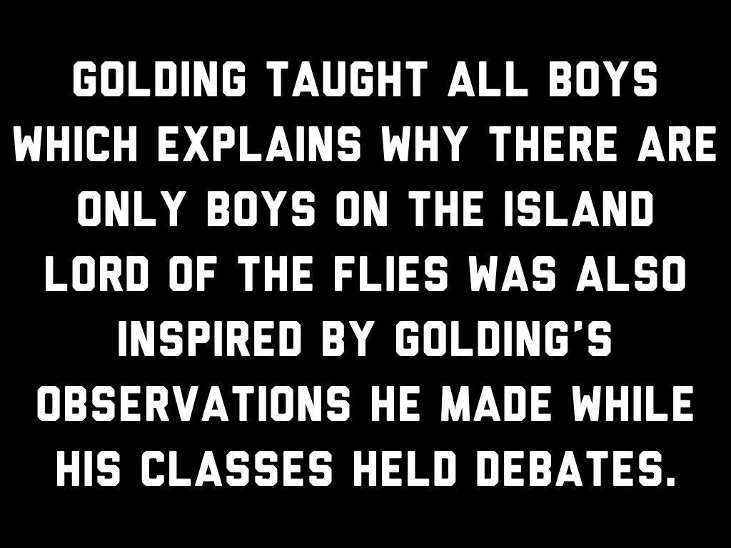 Lord of the Flies was also inspired by Golding’s observations he made while his classes held debates.