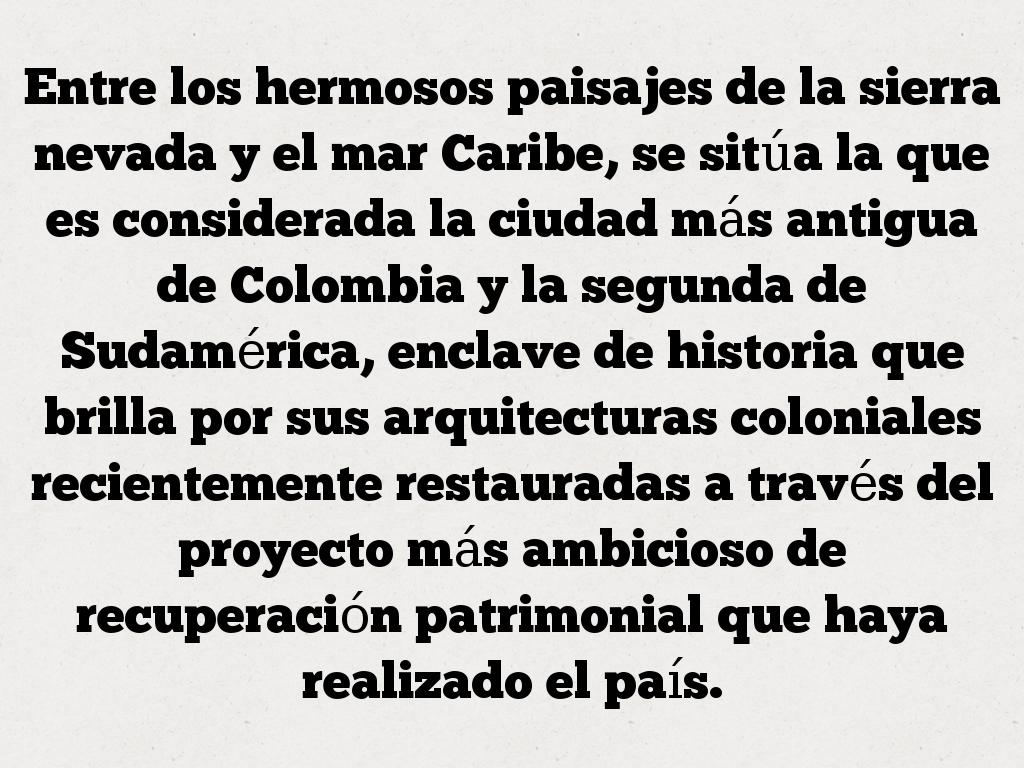 Entre los hermosos paisajes de la sierra nevada y el mar Caribe, se sitúa la que es considerada la ciudad más antigua de Colombia y la segunda de Sudamérica, enclave de historia que brilla por sus arquitecturas coloniales recientemente restauradas a través del proyecto más ambicioso de recuperación patrimonial que haya realizado el país.