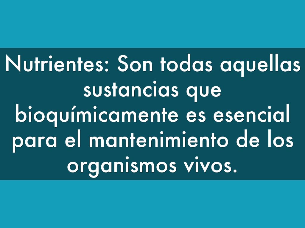 Nutrientes: Son todas aquellas sustancias que bioquímicamente es esencial para el mantenimiento de los organismos vivos.