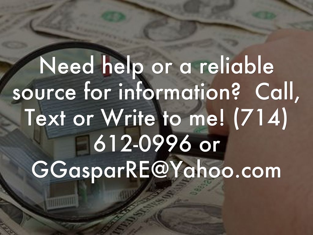 Need help or a reliable source for information? Call, Text or Write to me! (714) 612-0996 or