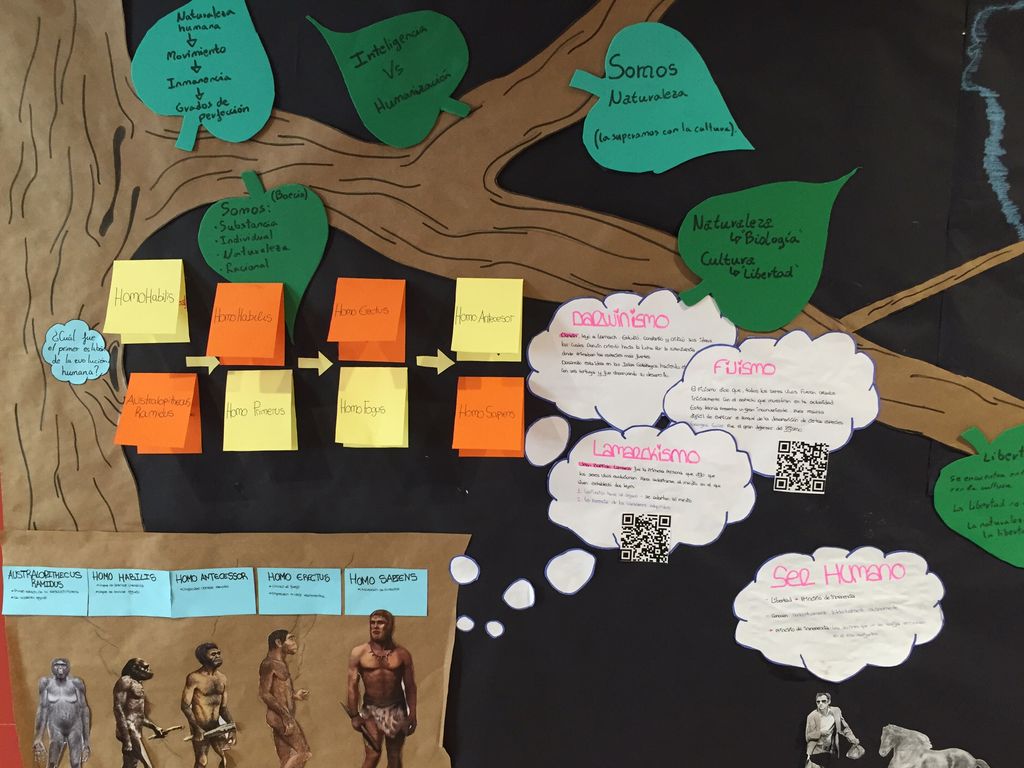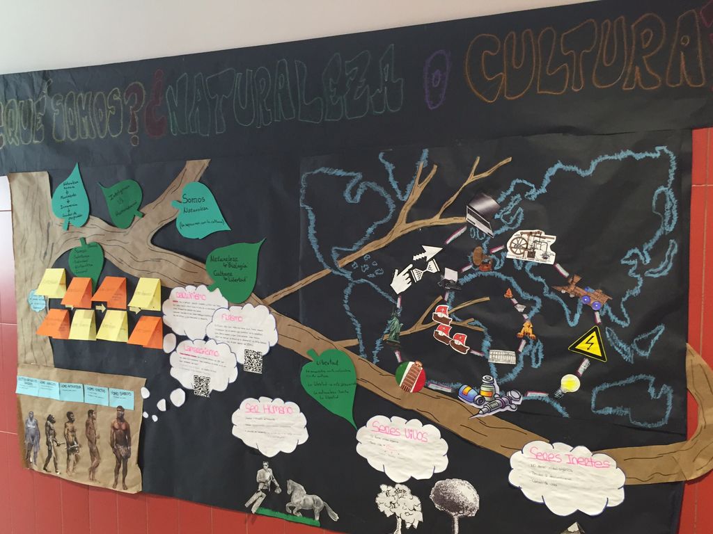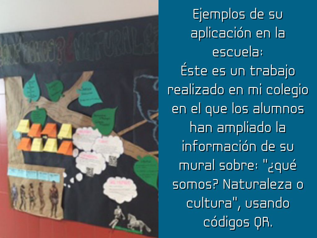 Ejemplos de su aplicación en la escuela: Éste es un trabajo realizado en mi colegio en el que los alumnos han ampliado la información de su mural sobre: "¿qué somos? Naturaleza o cultura", usando códigos QR.