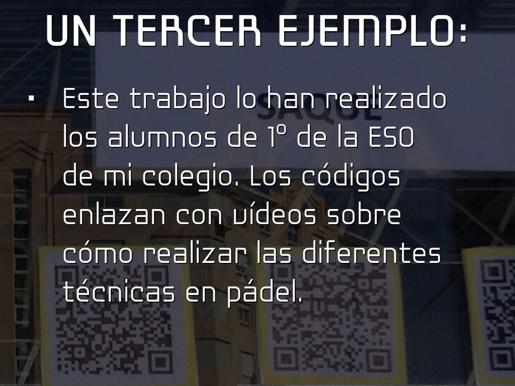 Este trabajo lo han realizado los alumnos de 1º de la ESO de mi colegio. Los códigos enlazan con vídeos sobre cómo realizar las diferentes técnicas en pádel.