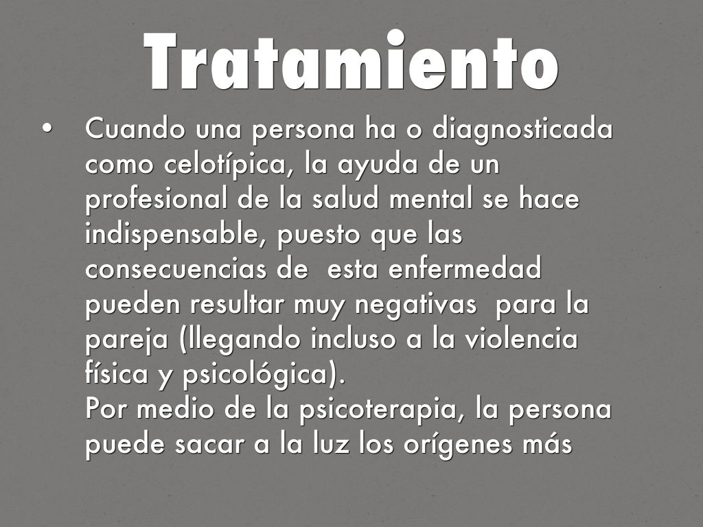 Cuando una persona ha o diagnosticada como celotípica, la ayuda de un profesional de la salud mental se hace indispensable, puesto que las consecuencias de esta enfermedad pueden resultar muy negativas para la pareja (llegando incluso a la violencia física y psicológica).