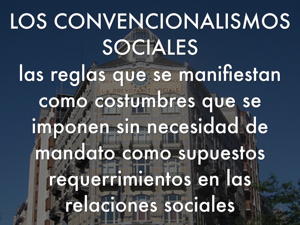 LOS CONVENCIONALISMOS SOCIALES las reglas que se manifiestan como costumbres que se imponen sin necesidad de mandato como supuestos requerrimientos en las relaciones sociales