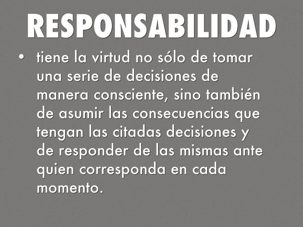 tiene la virtud no sólo de tomar una serie de decisiones de manera consciente, sino también de asumir las consecuencias que tengan las citadas decisiones y de responder de las mismas ante quien corresponda en cada momento.