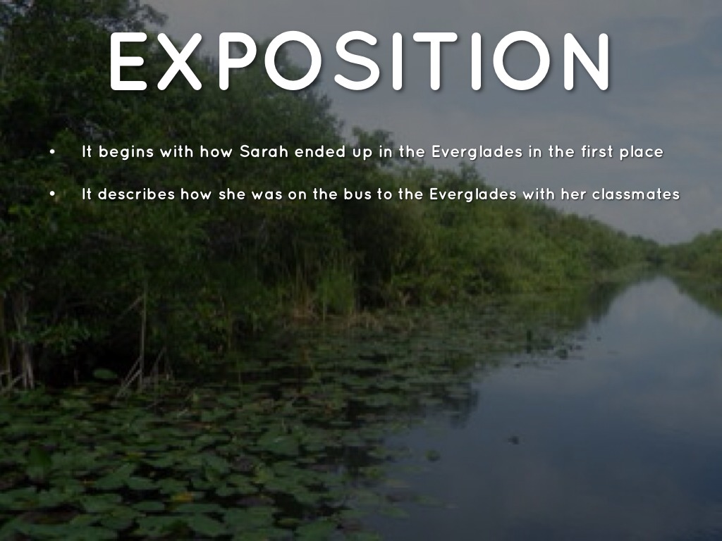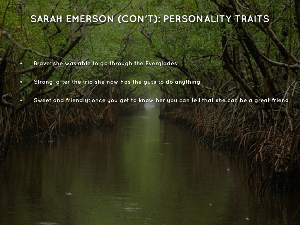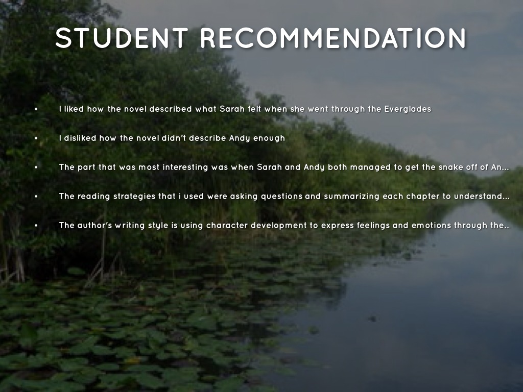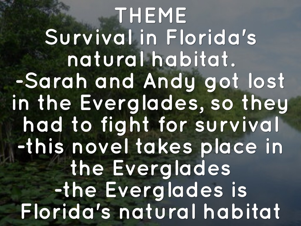 - I liked how the novel described what Sarah felt when she went through the Everglades