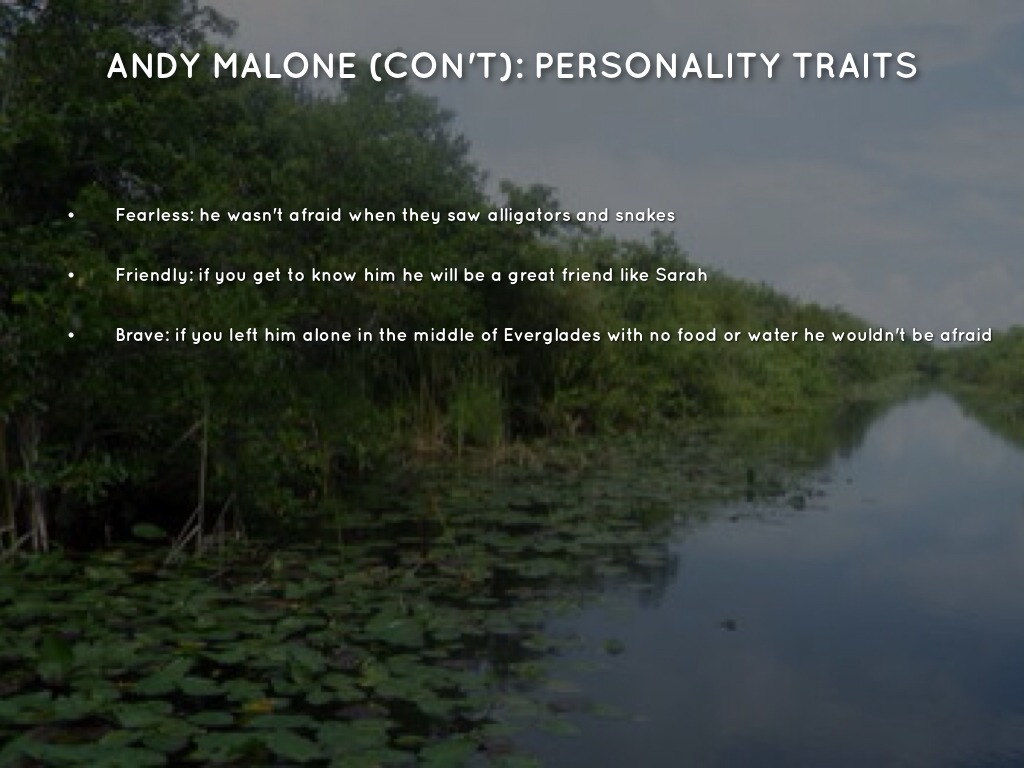 ANDY MALONE (CON'T): PERSONALITY TRAITS