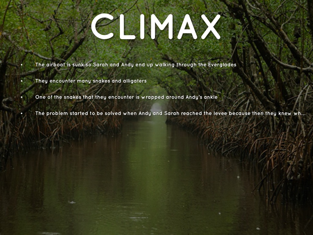 -Sarah and Andy got lost in the Everglades, so they had to fight for survival