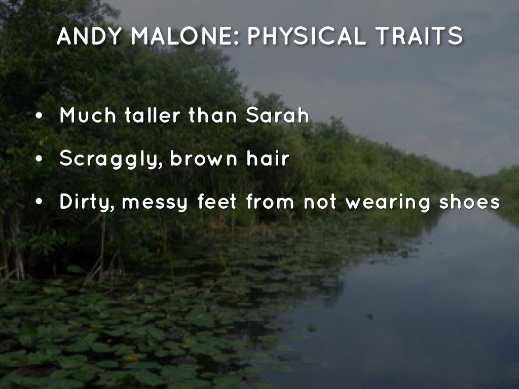 The story would be different if it were told in a different point of view because then you wouldn't see or feel what Sarah was going through when she went on the trip. It would just describe the sights and the feelings of another character in the story. If the book described Andy Malone, then it would probably say how he was used to going around in the Everglades and how he felt when he did feel despair and hope. Another reason is that there are many differences between all of the characters in this book, so of course it would be different. Especially this book in particular. There are not that many similarities within the characters, so the novel would be hard to make the same.
