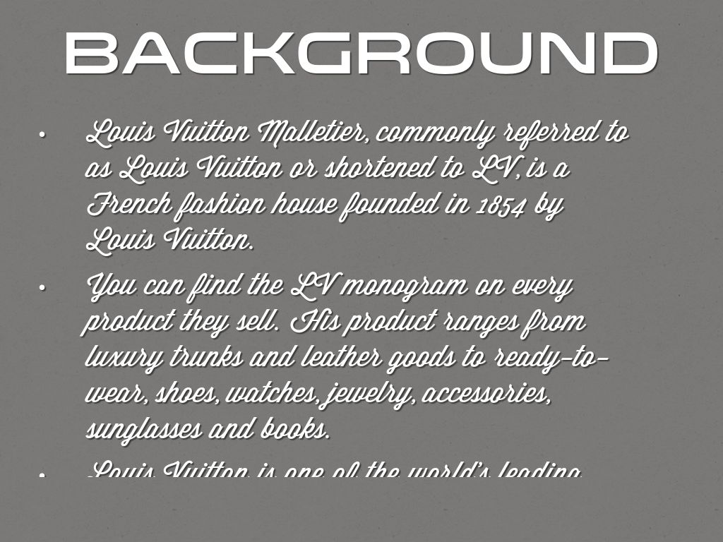 • You can find the LV monogram on every product they sell. His product ranges from luxury trunks and leather goods to ready-to-wear, shoes, watches, jewelry, accessories, sunglasses and books.
