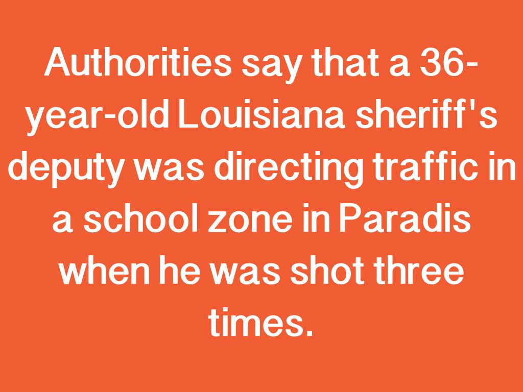 Authorities say that a 36-year-old Louisiana sheriff's deputy was directing traffic in a school zone in Paradis when he was shot three times.