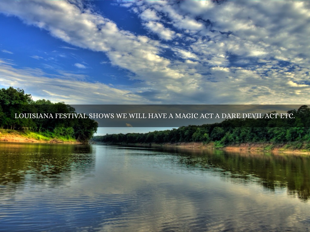 LOUISIANA FESTIVAL SHOWS WE WILL HAVE A MAGIC ACT A DARE DEVIL ACT ETC.