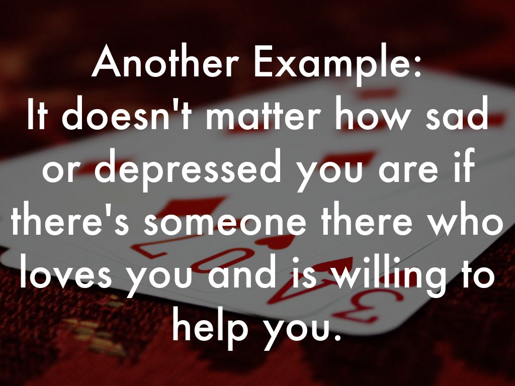It doesn't matter how sad or depressed you are if there's someone there who loves you and is willing to help you.