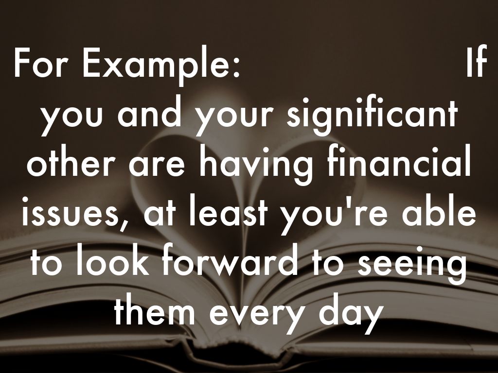 For Example: If you and your significant other are having financial issues, at least you're able to look forward to seeing them every day
