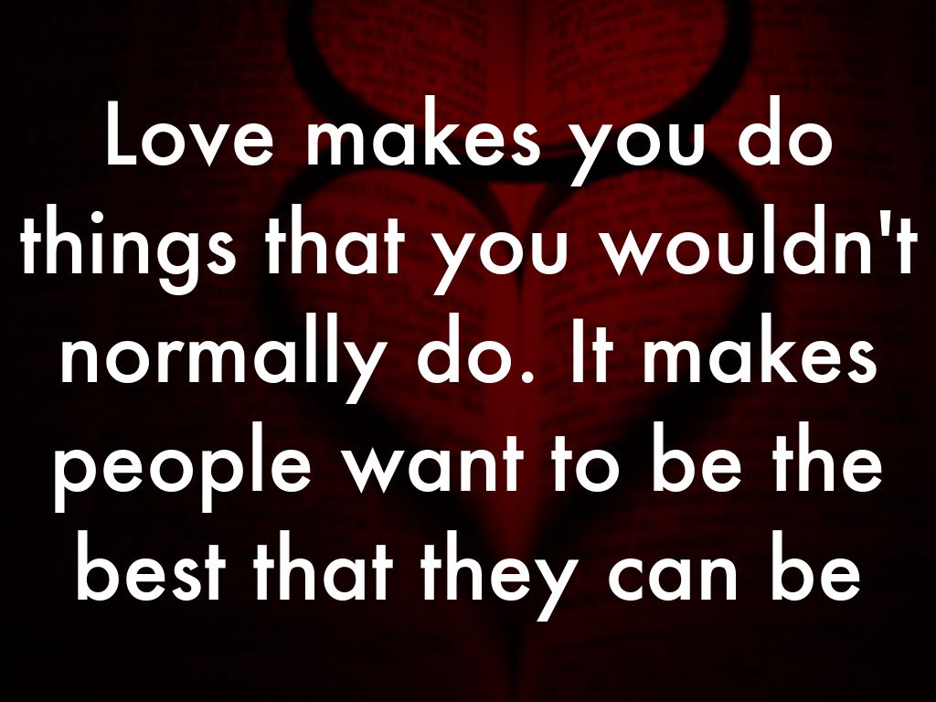 Love makes you do things that you wouldn't normally do. It makes people want to be the best that they can be