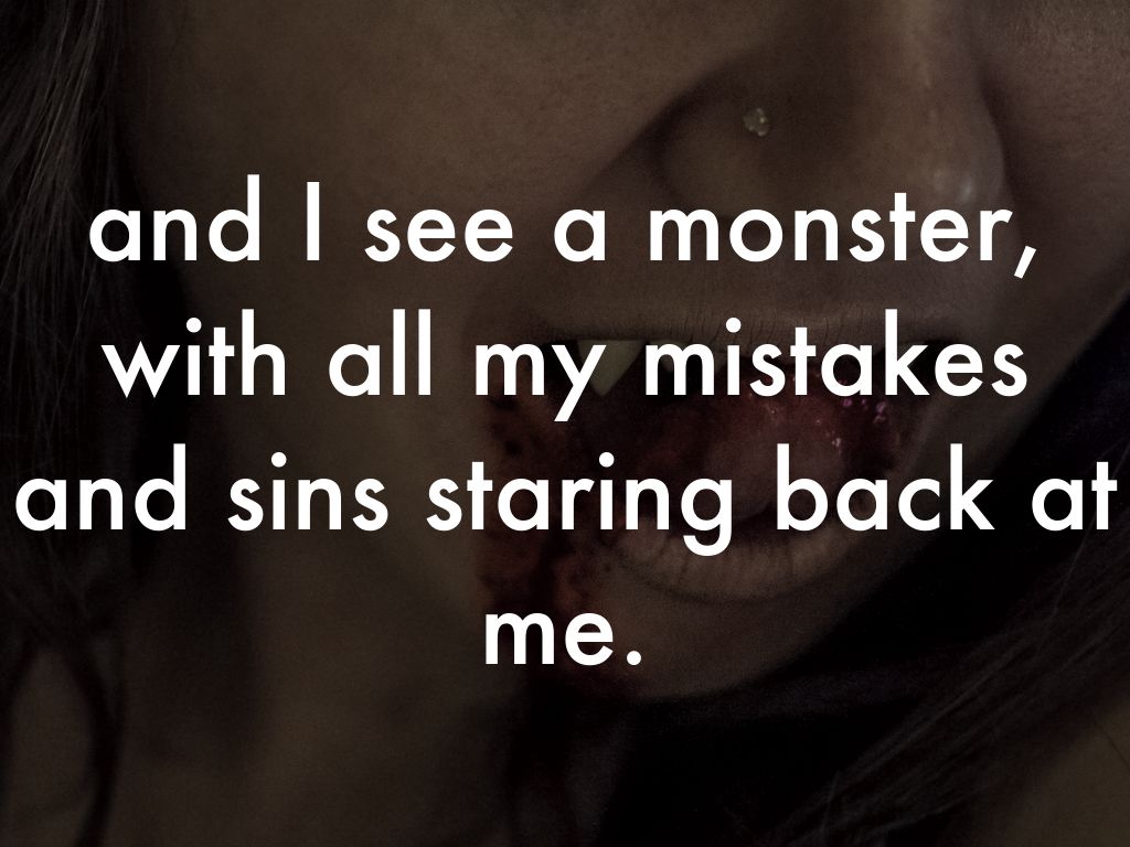 and I see a monster, with all my mistakes and sins staring back at me.