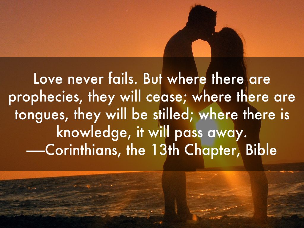 Love never fails. But where there are prophecies, they will cease; where there are tongues, they will be stilled; where there is knowledge, it will pass away.