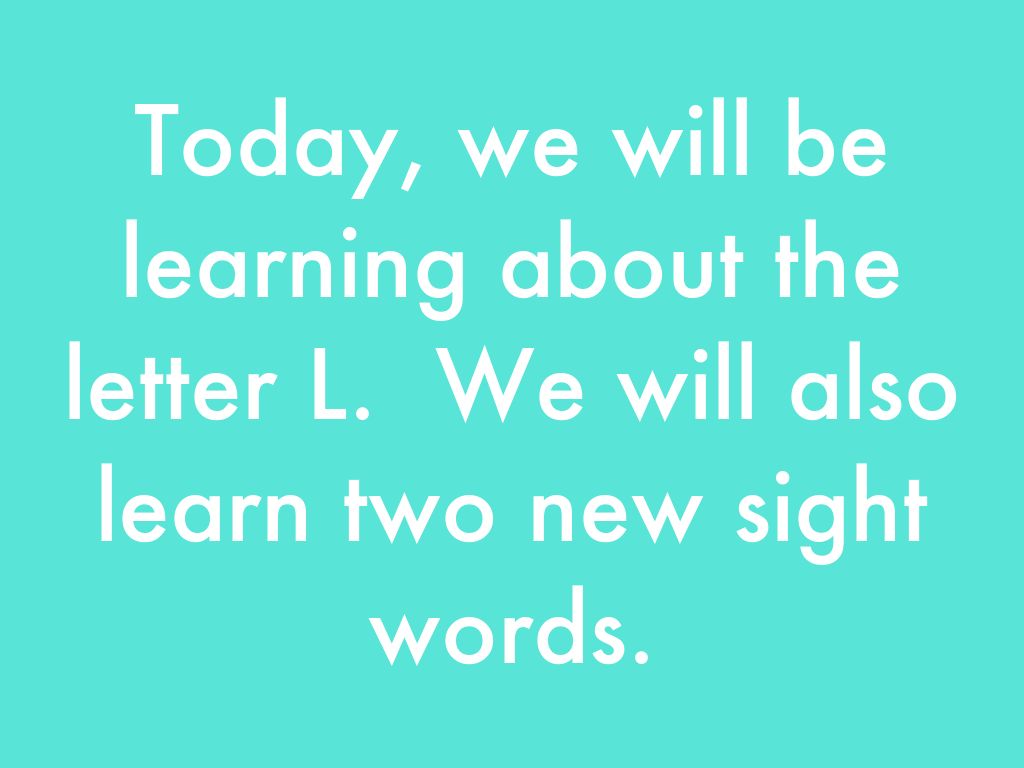 Today, we will be learning about the letter L. We will also learn two new sight words.