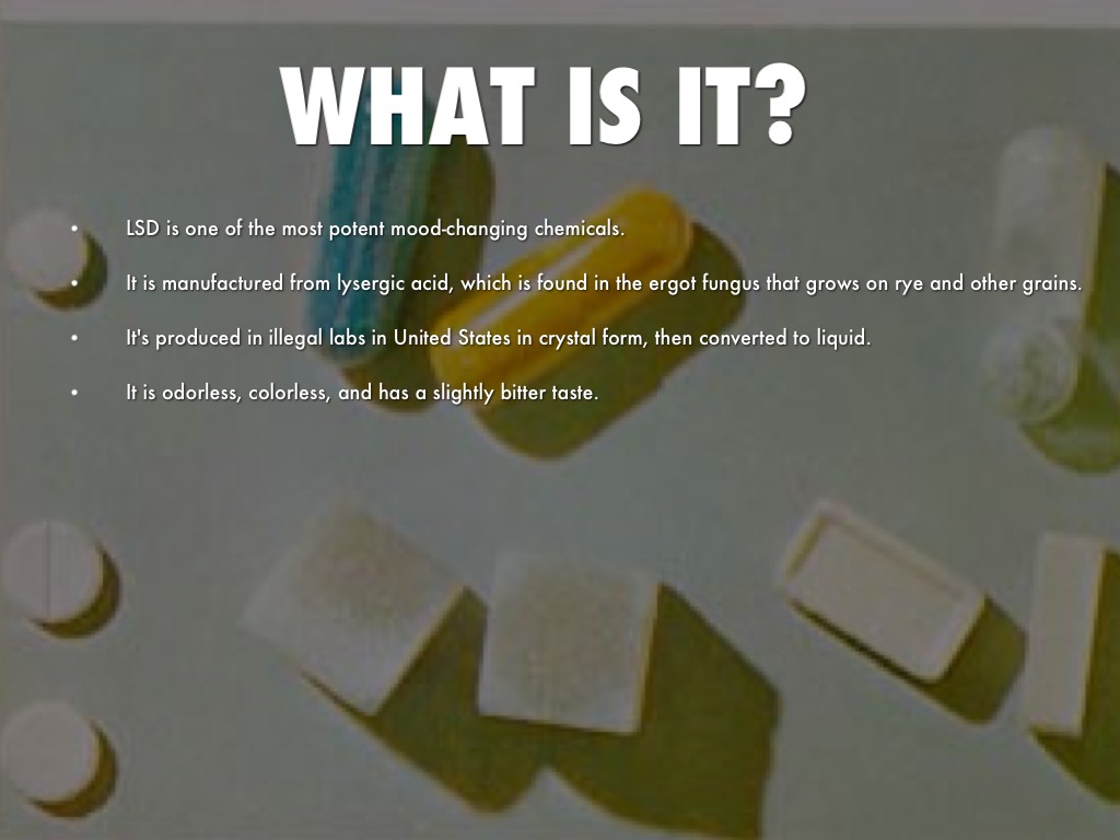 It is manufactured from lysergic acid, which is found in the ergot fungus that grows on rye and other grains.