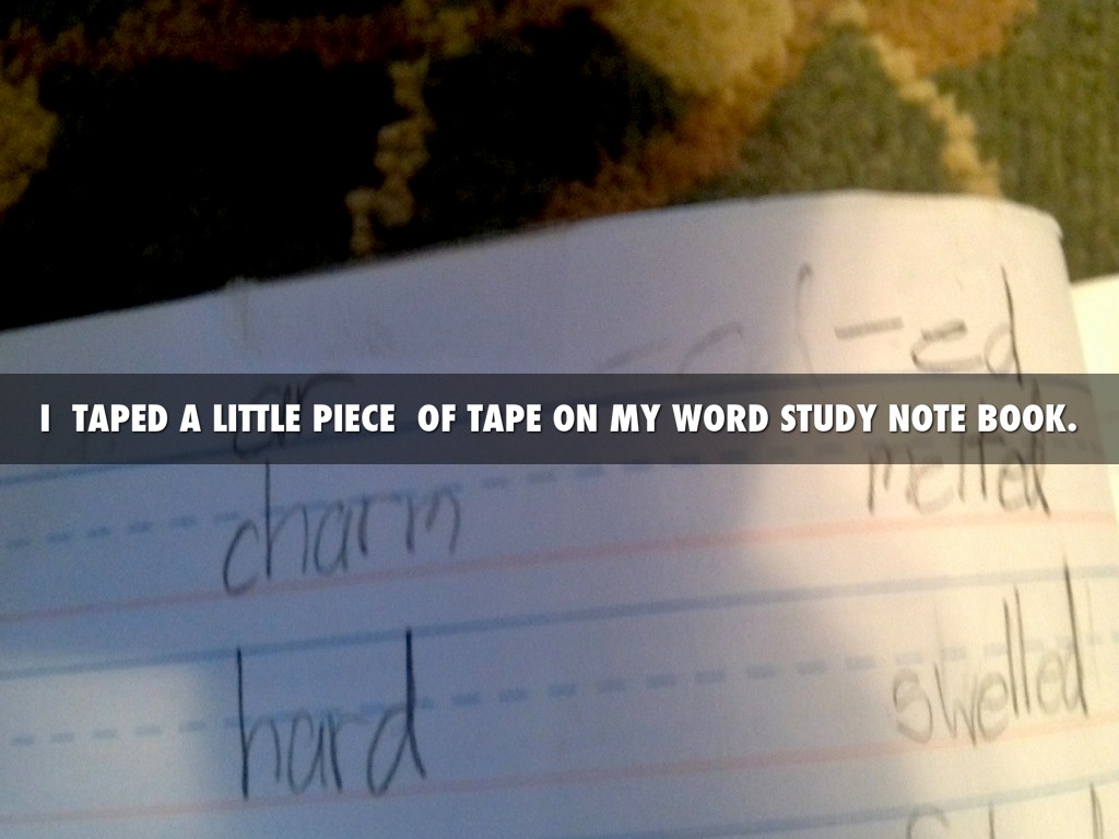 I TAPED A LITTLE PIECE OF TAPE ON MY WORD STUDY NOTE BOOK.