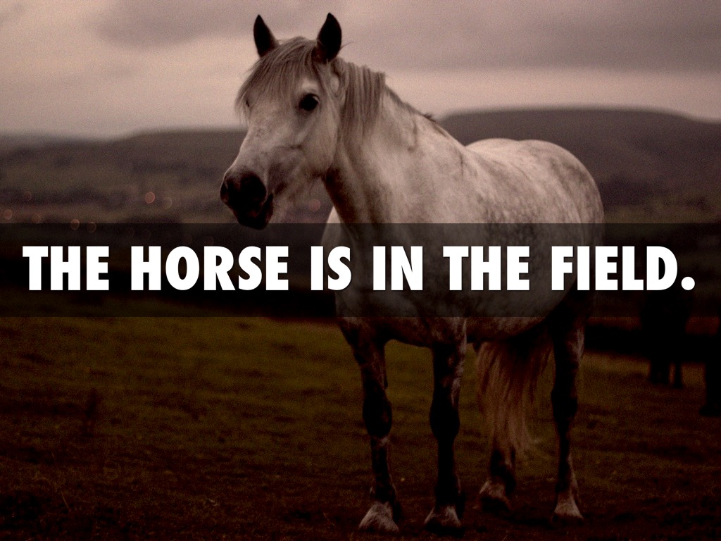 THE HORSE IS IN THE FIELD.