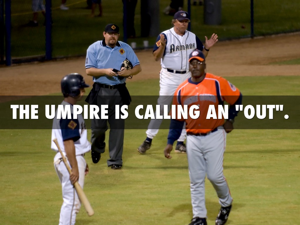 THE UMPIRE IS CALLING AN "OUT".