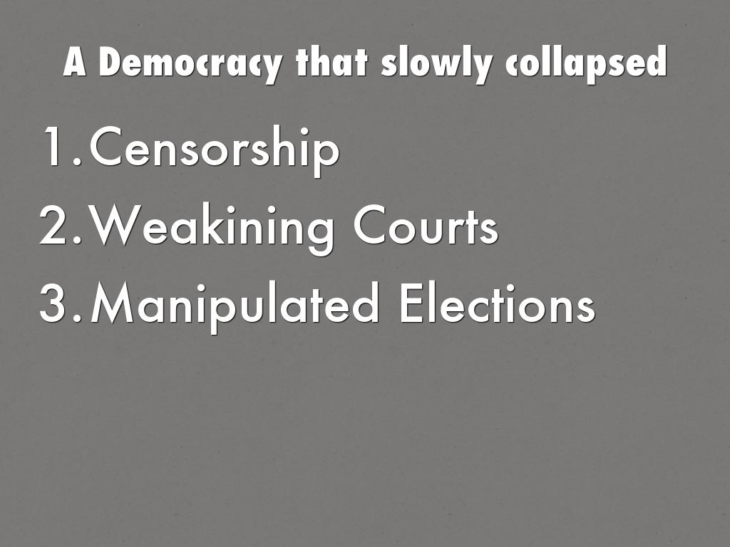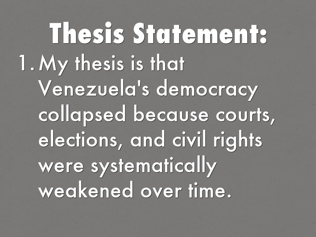 My thesis is that Venezuela's democracy collapsed because courts, elections, and civil rights were systematically weakened over time.