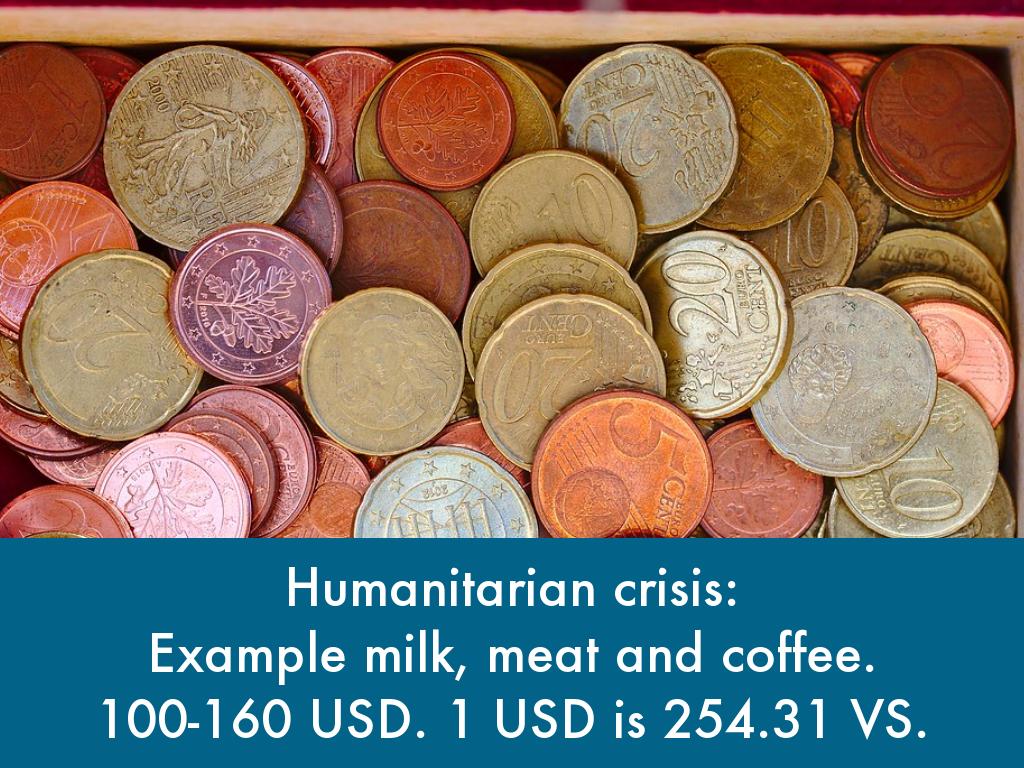 Example milk, meat and coffee. 100-160 USD. 1 USD is 254.31 VS.